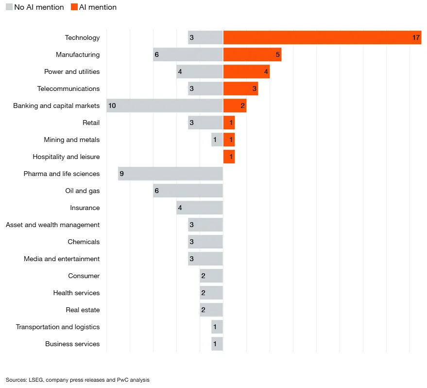 - While the Technology sector leads with 17 AI-focused deals, traditional industries are rapidly catching up.