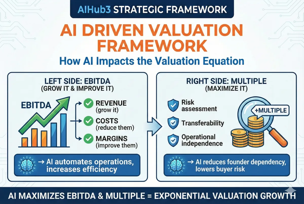 The pattern: AI implementations that improve EBITDA quality (margins, predictability) and reduce execution risk (founder dependency, process documentation) directly increase multiples.