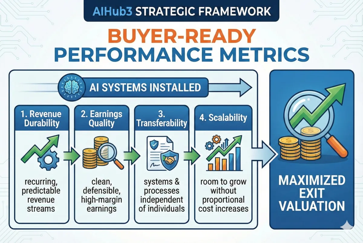 85% of buyers now evaluate AI-enabled operations when valuing companies (Aventis Advisors, 2026). The shift isn't about "using AI"—it's about demonstrating operational maturity through:
